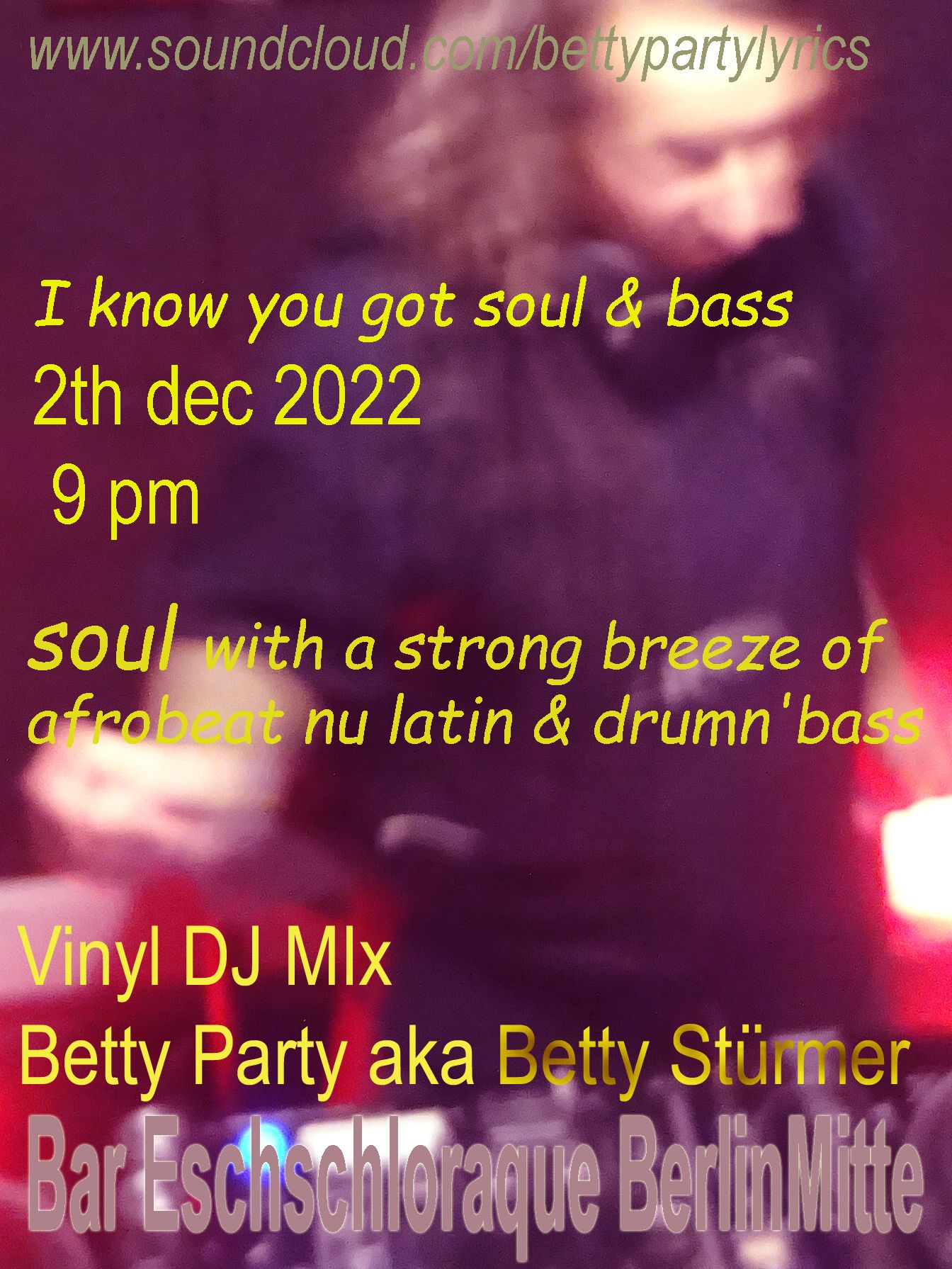 DJ Betty Party - aka Betty Stürmer / various shows - strictly vinyl, since 1997: Soul it Out - Call it Soulstep - Auflegen mit Spassfaktor - I know you got soul - soul kitchen - I know you got soul & bass